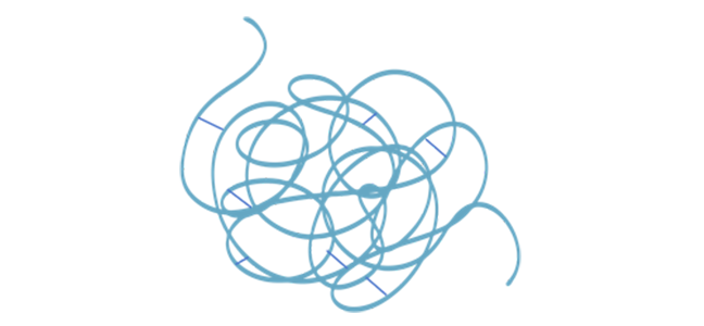 高分子量 HA 原料 (2300 kDa) は、物理的ストレス下で整列し、自己絡み合うことを可能にします。